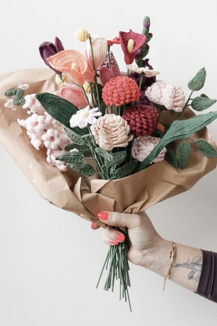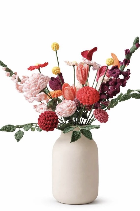 • Sascha Blase-van Wagtendonk heeft voor ‘Boeket haken’ patronen ontworpen voor maar liefst tien verschillende bloemen, die samen een kleurrijk boeket vormen.